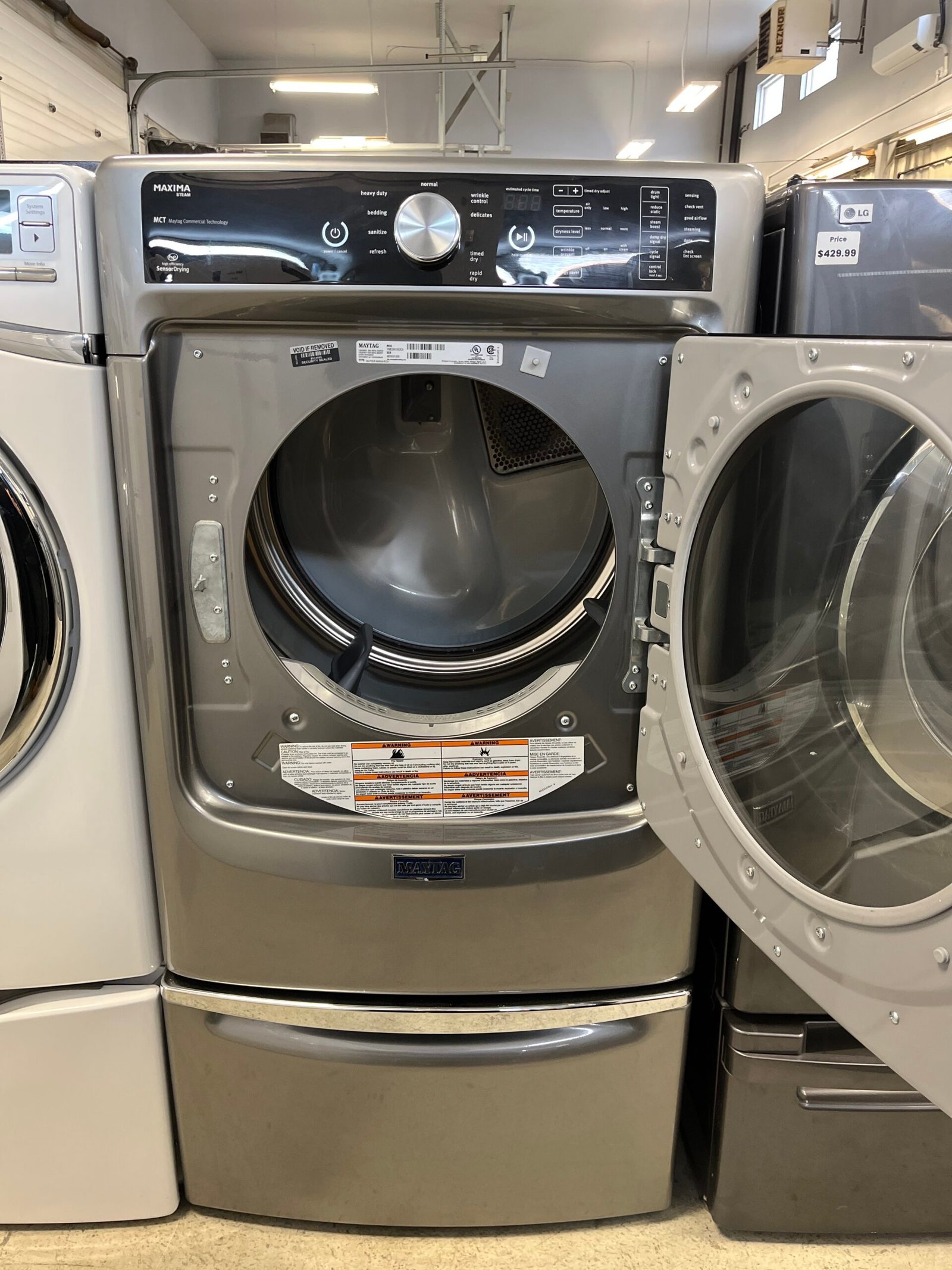 The Maytag YMED8100DC is a dependable electric dryer designed to deliver excellent drying performance and enhanced convenience. With its spacious capacity and advanced drying technology, this refurbished model ensures results you can count on, perfect for families with large laundry loads.